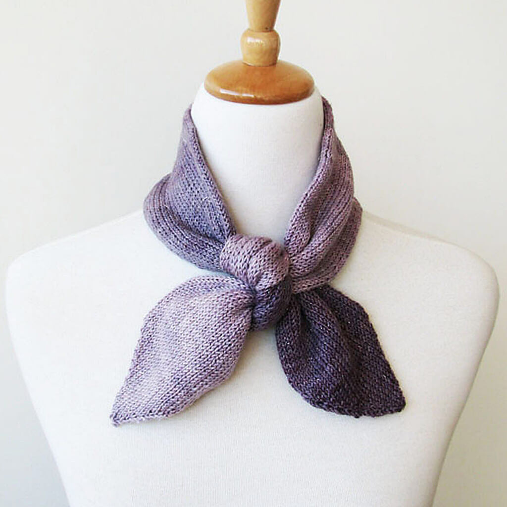 Choose between fingering weight or lace weight yarn held double, the possibilities are endless. Make a Sweet Li’l Scarfette in your favourite colour, a luxury yarn, choose self striping or a gradient yarn . Worked in the round from end to end, this is a simple project – a perfect project for travelling or TV watching.
